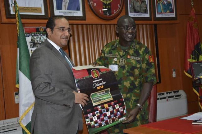 The Ambassador of the United Arab Emirate (UAE) to the Federal Republic of Nigeria, His Excellency Fahad Obaid Mohammad Altaffag has paid a visit to the Chief of Army Staff (COAS) Lt Gen Tukur Yusuf Buratai 12th of March 2019, at his office in Army Headquarters Abuja.