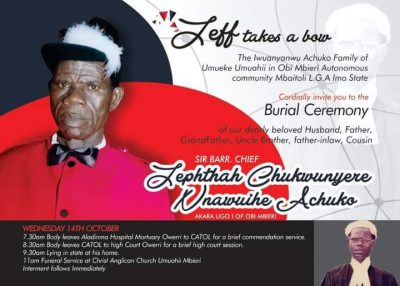 A legal luminary from Umahii, Obi Mbieri, Mbaitoli Local government area of Imo state, Nigeria, Barrister Jephthan Chukwuyere Achuko has been laid to rest at a colorful burial ceremony.