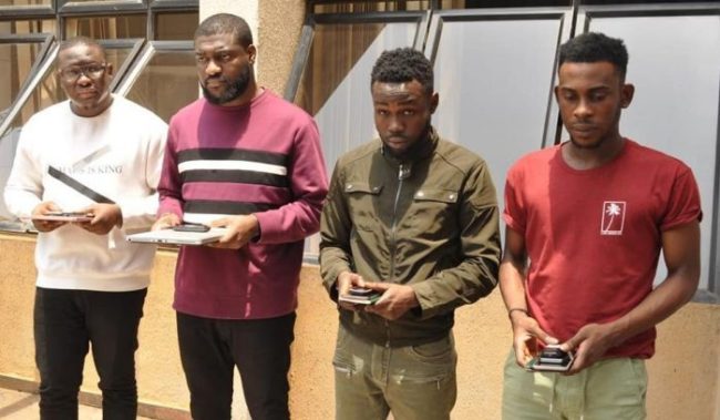 In its war against internet fraud, operatives of the Cyber Crime Section at the Abuja Zonal office of the Economic and Financial Crimes Commission, EFCC has raided the residence of suspected ‘yahoo-yahoo’ fraudsters and arrested four of them.
