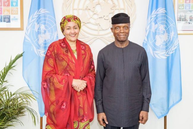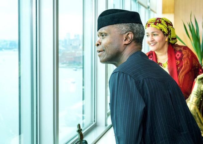 As part of line-up activities for his visit to the United States of America (USA), Nigeria’s Vice President Yemi Osinbajo has met with the United Nations Deputy Secretary-General, Amina Mohammed, at the UN Headquarters in New York.