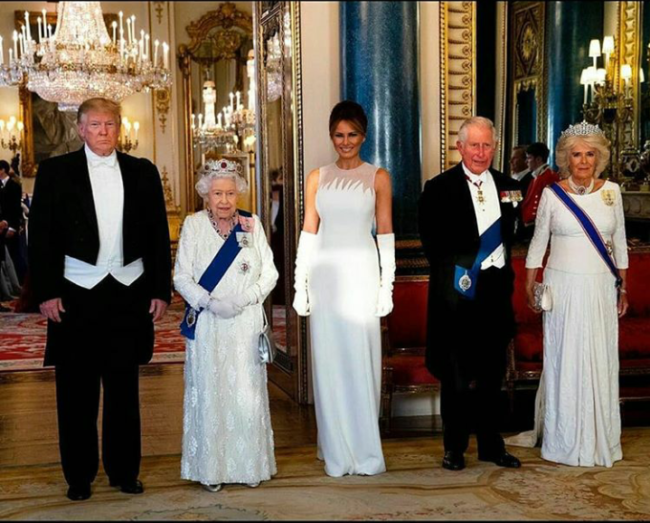 A state banquet in the palace’s ballroom took place on Monday evening, with Mr Trump, the Queen, Prince Charles and the Duchess of Cornwall joined by the Duke and Duchess of Cambridge, along with other UK public figures and prominent Americans living in Britain.
