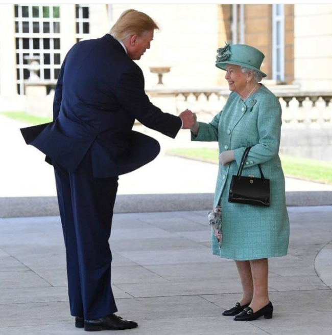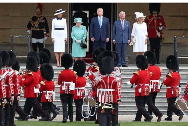 On Monday, the first day of Mr Trump’s three-day trip, a ceremonial welcome attended by the Queen, Prince of Wales and Duchess of Cornwall was held in the Buckingham Palace garden.